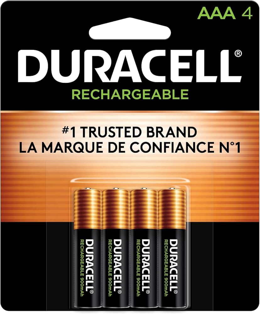Duracell AAA NiMH rechargeable batteries for high-drain devices.
