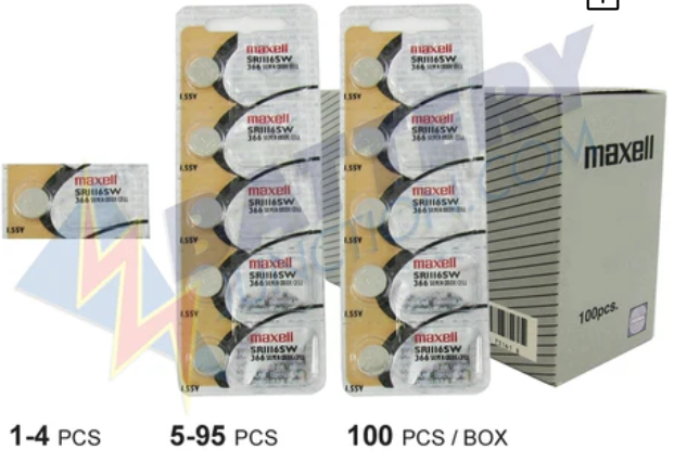 Maxell 366 SR1116SW Coin Cell Battery, 1PC NOW MERCURY-FREE Maxell Coin Cell Battery 366 SR1116SW is most often used as a watch battery replacement. Button battery cells can also be used in other electronic devices such as keyless remote entry systems for cars and homes, in hand-held electronic devices, and as batteries in calculators, photo cameras, audio books, games, toys, and more. Has a shelf life of 5+ years. Brand / Type: Maxell Model: 366 SR1116SW Chemistry: Silver Oxide Output Voltage: 1.55V Height: 1.65mm Weight: 0.0313 oz Diameter: 11.6mm Capacity: 29 mAh Equivalent Battery Types: Bulova 608, Citizen 280-46, Duracell D366, Energizer 365, 366, Gold Peak GP66, Panasonic SP365, SP366, SR1116W, SR1116SW, RayoVac 366, RW318, Renata 365, Seiko TR1116W, Timex ZA, ToshibaSR1116W, SR1116SW, WOS, Varta V366 collection: 1.55V Batteries; product type: Batteries – Button/Coin Cell – Silver Oxide Item Details Brand Maxell SKU MAXELL-366 MPN MAXELL-366 UPC 025215733017 Size 366 Voltage 1.55 Battery Rechargeable No Capacity (mAh) 29 Chemistry Silver Oxide Shelf Life 5 Years Packaging Tear Strip QTY Per Package 1 California Residents see Prop 65 WARNINGS Specifications Size 366 Voltage 1.55 Battery Rechargeable No Capacity (mAh) 29 Integrated Charge Port No Unit Dimensions Height 0.065 in (2 mm) Diameter 0.457 in (12 mm) Weight 0.031 oz (1 g) Packaging/Shipping Dimensions Shipping Weight 0.01 lb Documents PSDS Cross Reference Chart Additional Details Packaging Tear Strip Warranty Battery Junction Warranty Return Policy Return Policy