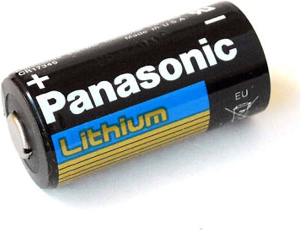 Panasonic CR123A 3V lithium battery ideal for flashlights, cameras, and security devices. Long shelf life and stable discharge.